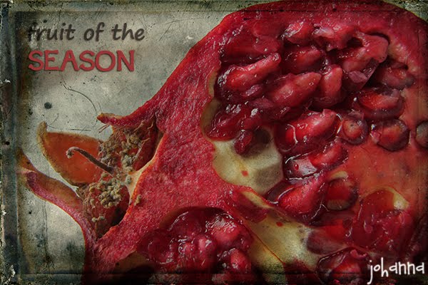 leslie from “french kiss” also offers a freebie texture today, and i instantly fell in love with “intrepid“. i took this photo of a pomegranate last week and added “intrepid” twice here (brushed off the texture partly over the fruit in the second layer via layer mask).