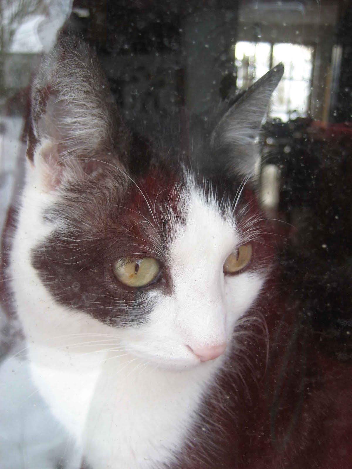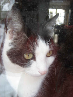 als ich heimkam, hockte timmy schon am fenster… tja, wären jetzt die drecksspritzer am fensterglas nicht… (ein photoshopper würde sie mal eben wegretuschieren, aber ich bekenne mich einfach zur wahrheit;)