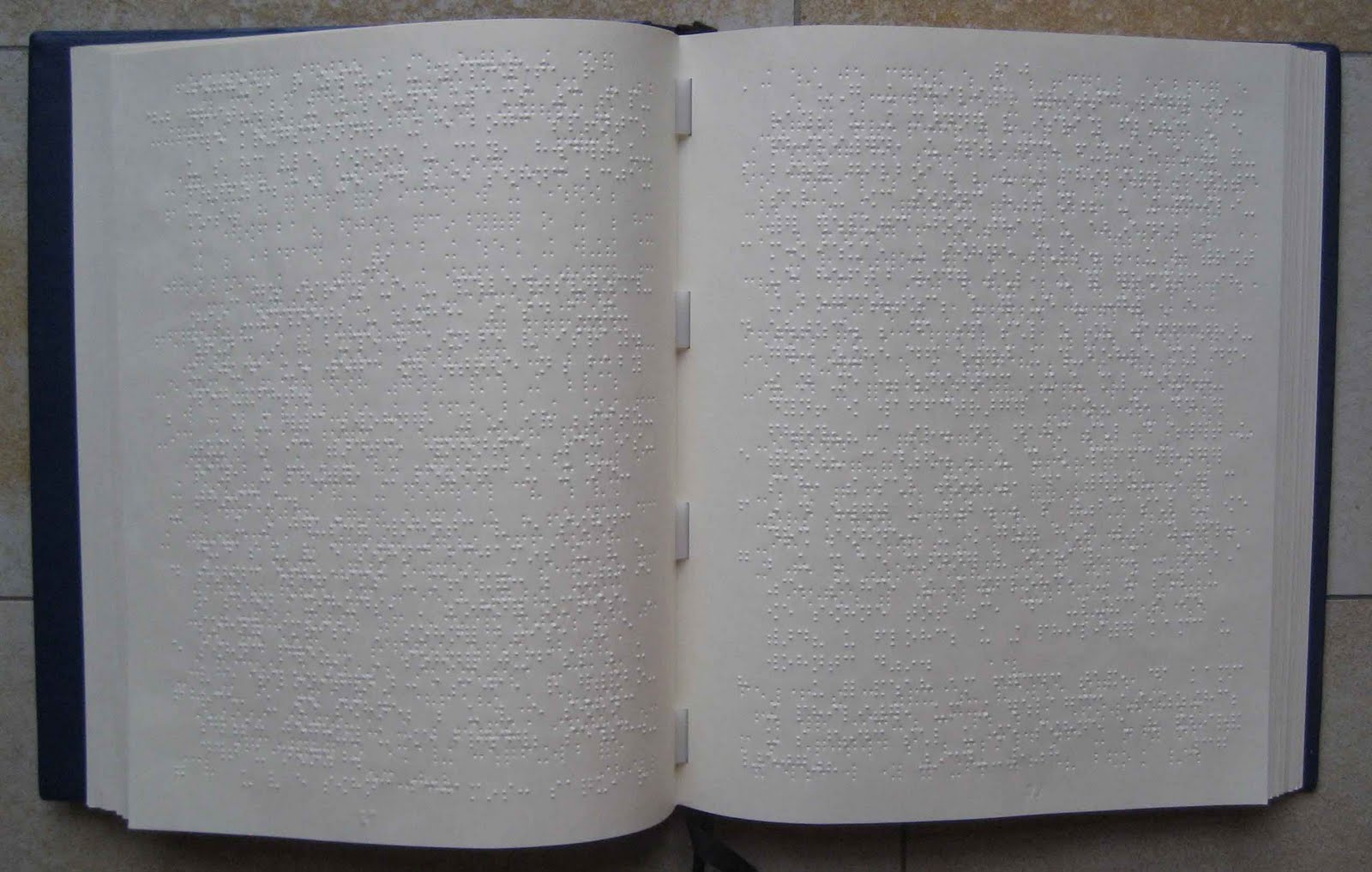 kürzlich habe ich ein paar bücher in blindenschrift erworben, von denen ich gerne etwas an interessierte abgeben möchte, denn solche bücher sind nicht so leicht zu finden… es gibt kein ganzes buch (zu groß und zu schwer zu verschicken), aber ich werde ein paar seiten heraustrennen und in einem großen umschlag verschicken (muss sie dazu knicken oder auf die hälfte schneiden, sie sind größer als din-a-4). ich lege auch noch anderes papierzeug bei (alte buchseiten vom flohmarkt, vintage bilder, servietten etc.) und ein paar fotos auf folie. – ich werde pro angefangenem hunderter bei den kommentaren einen weiteren umschlag verschicken, falls es mehr als 100 kommentare gibt.