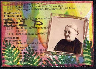 Wow die erste ATC ist ganz schoen “heavy”. Wo ich meine gemacht habe hatte ich erst die Todesanzeigen kurz beachtet aber konnte es nicht so richtig vertragen! Die zweite ATC ist total fun, was fuer eine schoene image mit dem Jungen