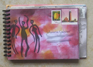 aber beim rumkruschteln bin ich auf einen haufen gesammelter briefumschläge gestoßen, die sich im lauf der zeit hier angesammelt haben. alle so schön bestempelt, dass ich es nicht übers herz brächte, sie zu entsorgen. hab mal 2 büchlein daraus gebunden, die ich natürlich jetzt auch noch bestücken kann…
